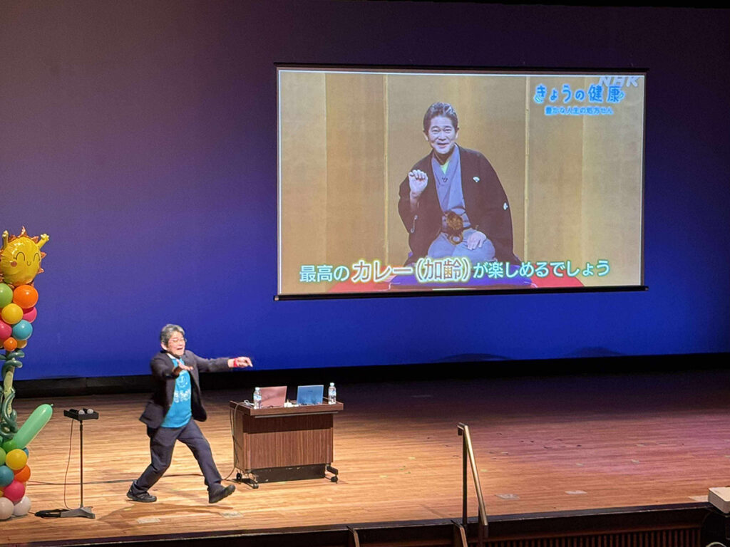 中瀬先生の講演から、笑いヨガの健康効果について、以前よりもさまざまな研究報告が増えていること、これからの時代の生き方など、終始笑いを交えながらの講演が行われました。