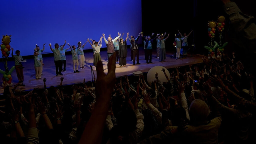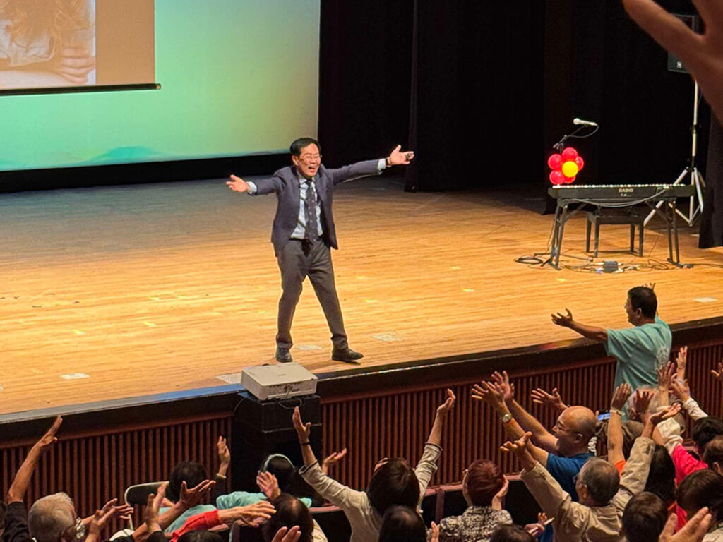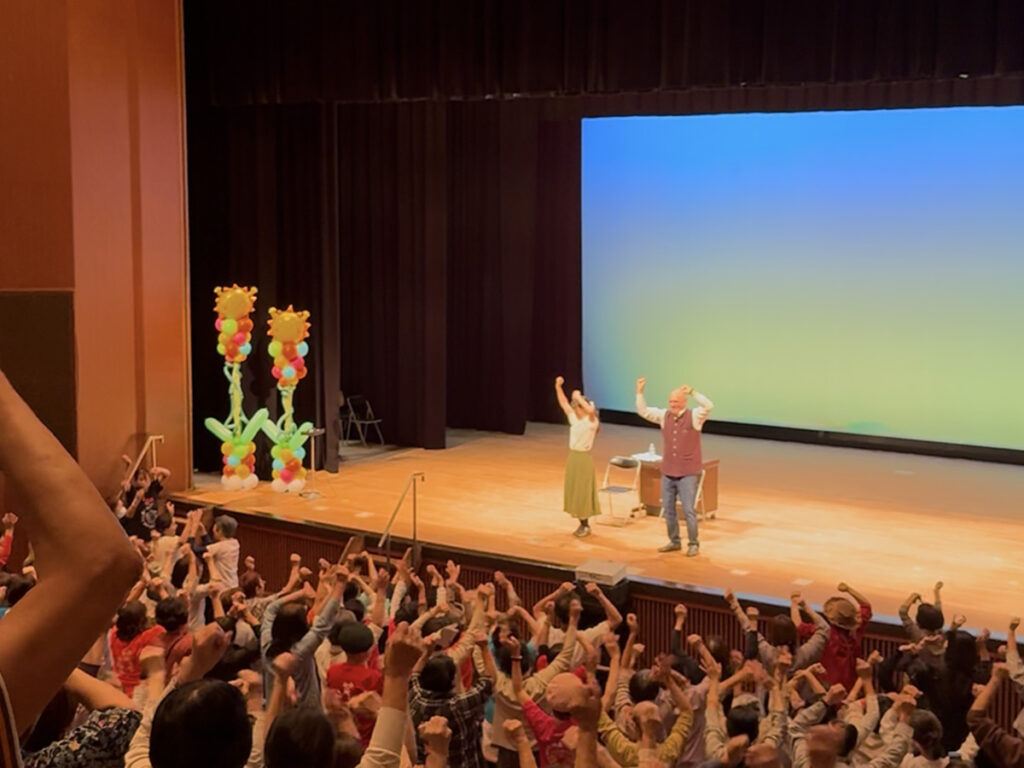 ツアー皮切りは、マダン・カタリア夫妻来日記念広島講演実行委員会の皆様による、「Dr. カタリア夫妻来日特別講演 in 広島」が広島県民文化センター・多目的ホールにて開催されました。コロナ禍を経て、久しぶりに開催するイベントだったので、初めて笑いヨガに参加する方も多くいらっしゃった様子です。